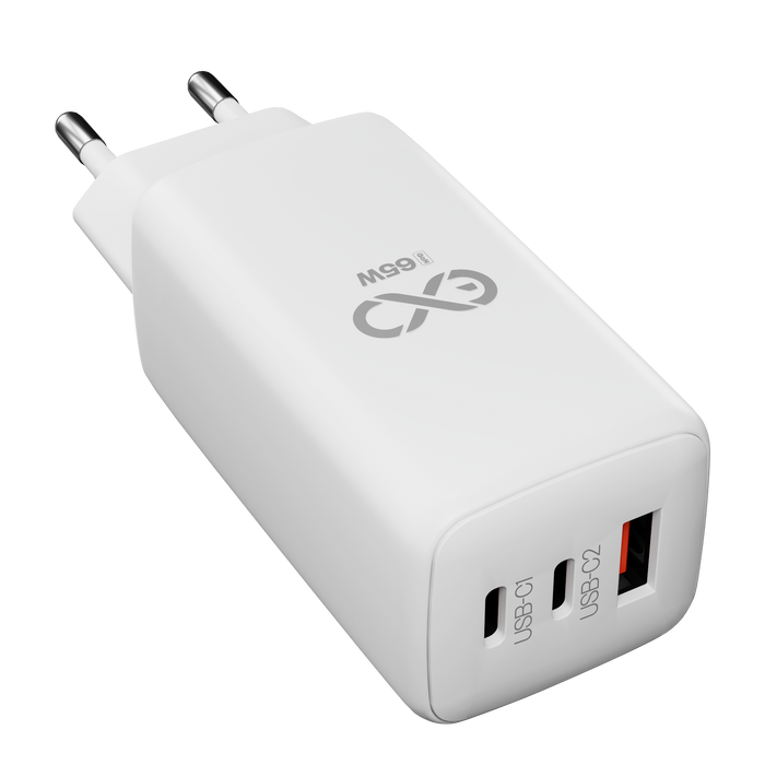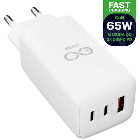 Uniwersalna ładowarka sieciowa eXc CUBE,1x USBA QC+2x USBC PD,65W, biała