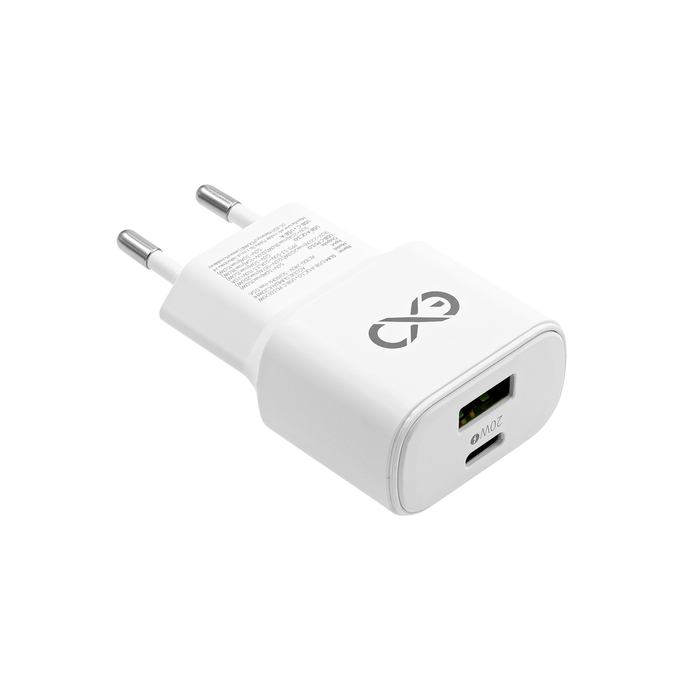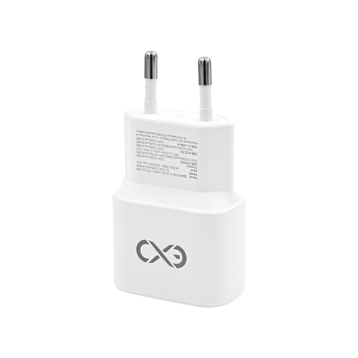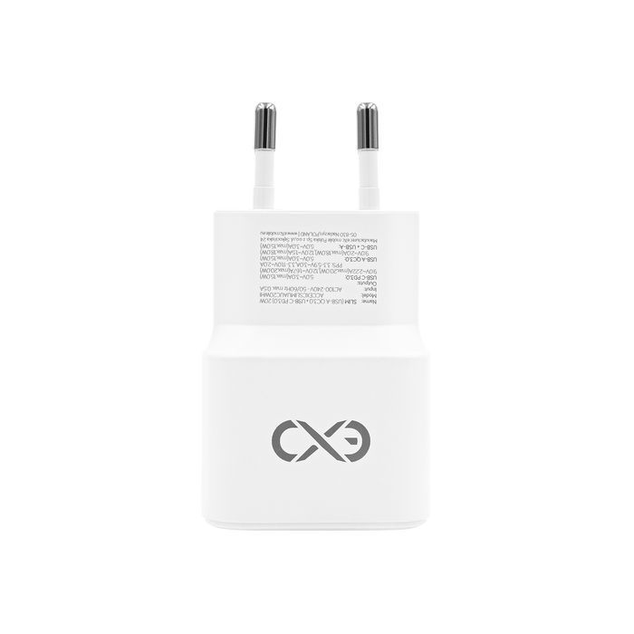 Uniwersalna ładowarka sieciowa eXc SLIM,1xUSBA QC+1xUSBC PD,20W,biała