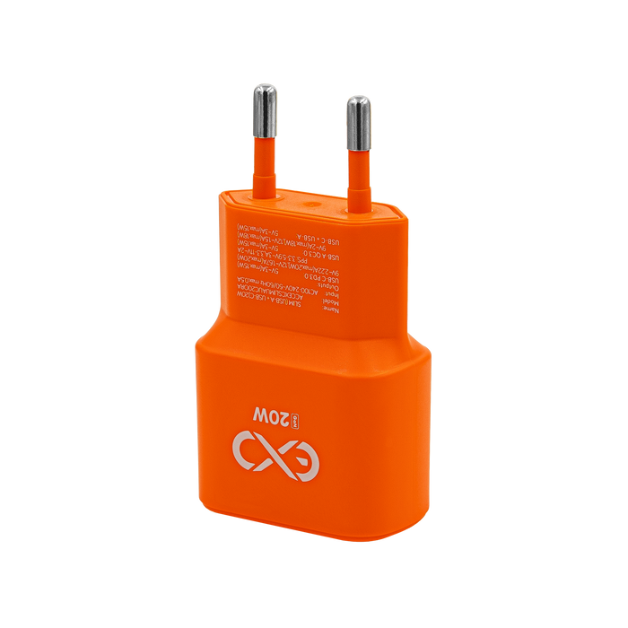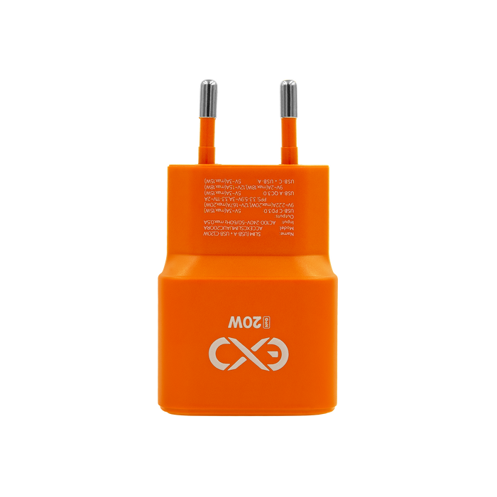 Uniwersalna ładowarka sieciowa eXc SLIM,1xUSBA QC+1xUSBC PD,20W,pomarańczowa